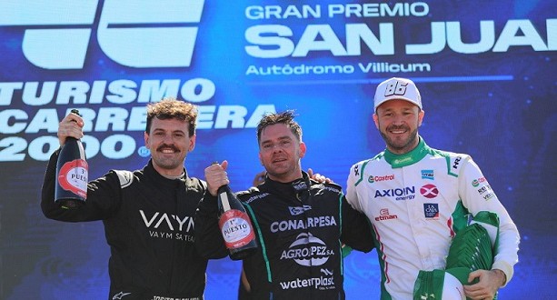 Bernardo Llaver (RV Racing) confirmó el buen trabajo mostrado el día sábado y con el Honda Civic del RV Racing en una dura batalla se quedó con la victoria dominical en el trazado sanjuanino. Segundo terminó Agustín Canapino (Renault Fluence- AXION energy Sport) y tercero fue "Josito" Di Palma (Citroën C4 Lounge- Aimar Motorsport). Con este resultado, Canapino es el puntero del campeonato con 129 puntos. La carrera se desarrolló con un clima soleado y con un gran marco de público que se acercó al pintoresco Circuito San Juan Villicum. En la largada pelearon Ardusso y Llaver por la punta y el de Las Parejas se impuso sobre el mendocino quien lo busco en las tres primeras curvas, llegando a estar a la par varias veces pero sin lograr el objetivo. Detrás la pelea estaba entre Chapur, Canapino y Di Palma, mientras en el otro pelotón los compañeros de equipo Yankelevich y Chas hacían lo propio. La competencia se neutralizó producto de la detención del Ford Focus de Nicolás Gines. En el relanzamiento otra vez se impuso Ardusso sobre Llaver, Canapino, Chapur y Di Palma. La segunda intervención del Pace Car vino por el toque entre Yankelevich, Trappa y Quevedo quedando estos dos últimos fuera de competencia. Cuando se reanudó la carrera, Llaver volvió a intentar sobre Ardusso nuevamente la superación y con una gran maniobra lo logró pasando a comandar las acciones, tercero era Canapino, cuarto Chapur y quinto Di Palma. Un toque entre Krujoski y Chas produjo una nueva neutralización. Las últimas vueltas fueron vibrantes. En el relanzamiento Llaver prevaleció sobre Ardusso que comenzó a perder lugares producto del incoveniente que tuvo con la caja de velocidades y dejando a Canapino en el segundo lugar y a Di Palma en el tercero que fueron los que completaron el podio. Luego finalizaron 4° Humberto Krujoski (Renault Fluence-AXION energy Sport); 5° Rodrigo Lugón (Citroën C4 Lounge-Aimar Motorsport); 6° Facundo Ardusso (Honda Civic- RV Racing) Braian Quevedo (Renault Fluence-AXION energy Sport); 7° Facundo Chapur (Citroën C4 Lounge-Aimar Motorsport); 8° Mario Valle (Citroën C4 Lounge-FDC Motorsport) y 9° Nicolás Suárez (Ford Focus-JM Motorsport). Con este resultado, Canapino es el líder del campeonato con 129 puntos, segundo esta Ardusso con 118, tercero Llaver con 110, cuarto Chapur con 109 y quinto Di Palma con 82. La próxima fecha, la tercera del calendario 2025, será el 18 de mayo en el Autódromo Roberto Mouras de La Plata. | TURISMO CARRETERA 2000 – SAN JUAN VILLICUM – CARRERA 2 | | | | POS. | Nº | PILOTO | | MARCA | VTAS | Tiempo | | 1 | 41 | LLAVER, BERNARDO | HONDA CIVIC | 14 | 31;23.822 | | 2 | 86 | CANAPINO, AGUSTÍN | RENAULT FLUENCE | 14 | 3.020 | | 3 | 13 | DI PALMA, LUIS JOSÉ | CITROEN C4 LOUNGE | 14 | 8.114 | | 4 | 119 | KRUJOSKI, HUMBERTO | RENAULT FLUENCE | 14 | 9.629 | | 5 | 113 | LUGÓN, RODRIGO | CITROEN C4 LOUNGE | 14 | 11.184 | | 6 | 83 | ARDUSSO, FACUNDO | HONDA CIVIC | 14 | 11.807 | | 7 | 79 | CHAPUR, FACUNDO | CITROEN C4 LOUNGE | 14 | 12.437 | | 8 | 74 | VALLE, MARIO | CITROEN C4 LOUNGE | 14 | 12.899 | | 9 | 46 | SUÁREZ, NICOLÁS | FORD FOCUS | 11 | 3 VTAS | | 10 | 5 | YANKELEVICH, VALENTÍN | RENAULT FLUENCE | 8 | 6 VTAS | | 11 | 12 | CHAS, MATÍAS | RENAULT FLUENCE | 7 | 7 VTAS | | 12 | 72 | VALLE, MAXIMILIANO | HONDA CIVIC | 5 | 9 VTAS | | 13 | 27 | TRAPPA, CAMILO | RENAULT FLUENCE | 3 | 11 VTAS | | 14 | 69 | QUEVEDO, BRAIAN | RENAULT FLUENCE | 3 | 11 VTAS | | 15 | 19 | GINES, NICOLÁS | FORD FOCUS | 0 | 14 VTAS | | PROMEDIO: 113,812 Km/h | | | | | | RECORD DE VUELTA: Nro 41 (LLAVER) Vta 11 en 1:44.574 a 146,446 Km/h | | | NRP: NRO 19 (GINES) | | | | | | | | | | | | | | |